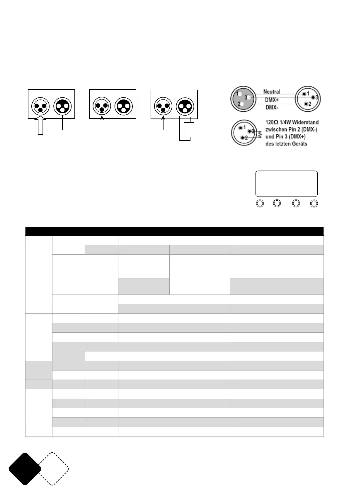 Die Tabelle der DMX Kanäle bendet sich am Ende der Anleitung