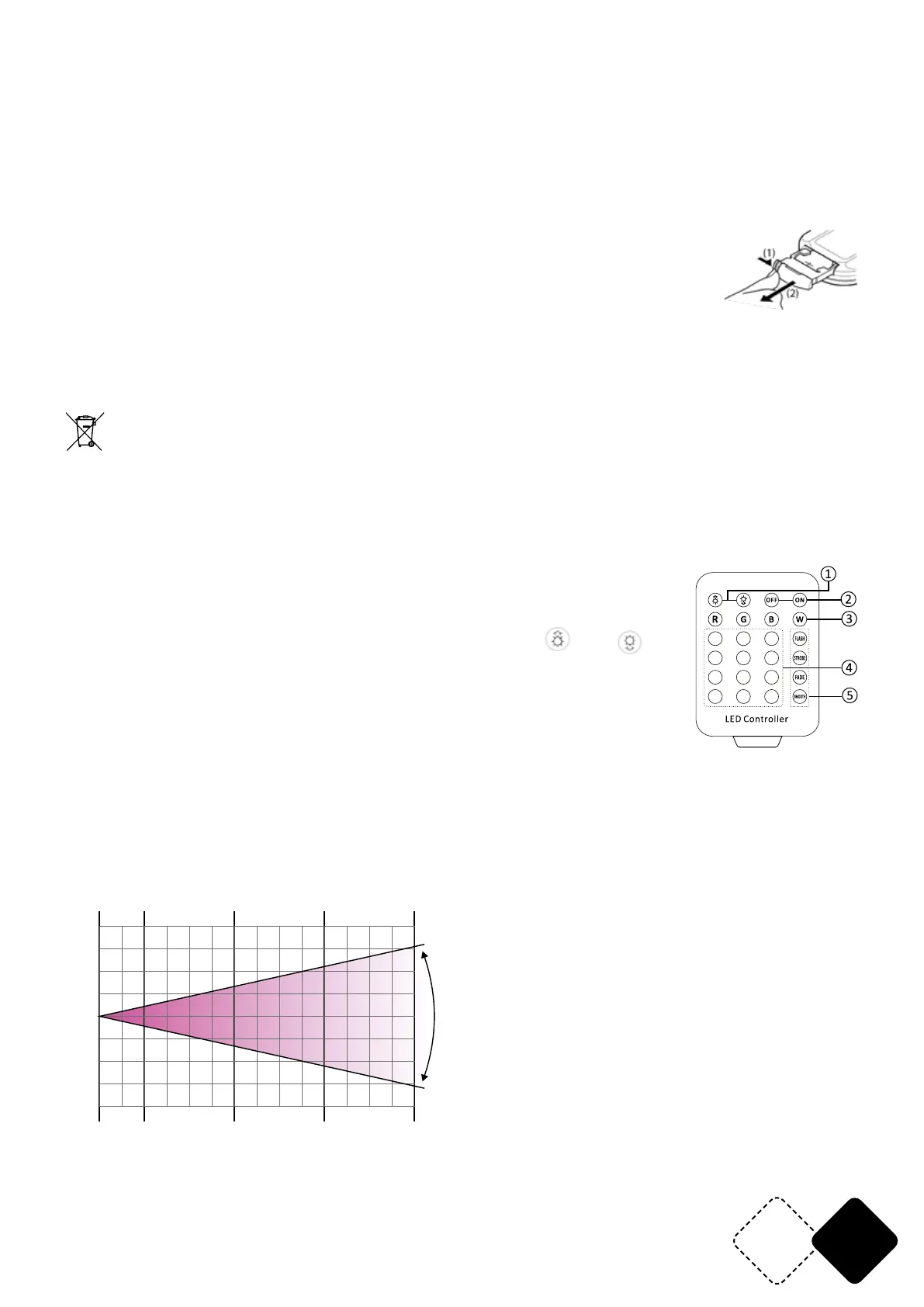Die Fernbedienung hat eine Reichweite von 6m in einem Winkel von 30° zum Sensor. Richten Sie sie