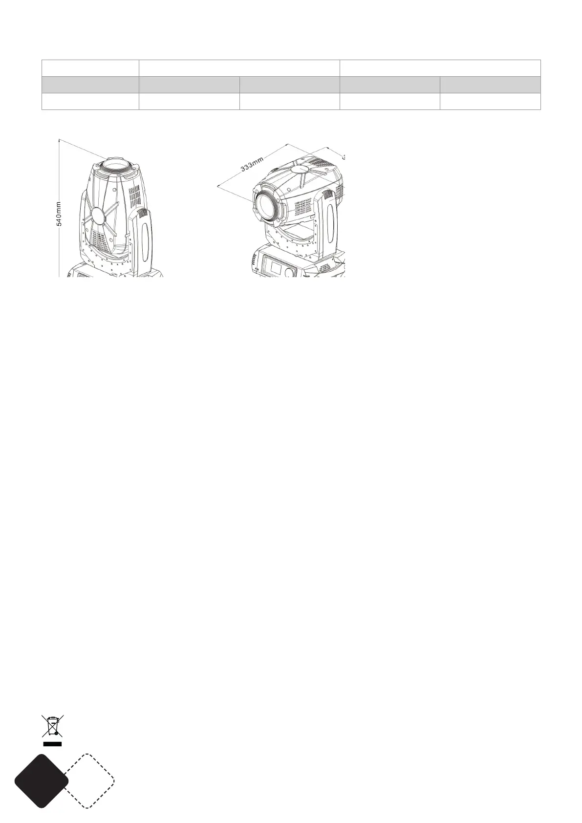 Dimensions .......................................................................................................................333 x 323 x 540mm