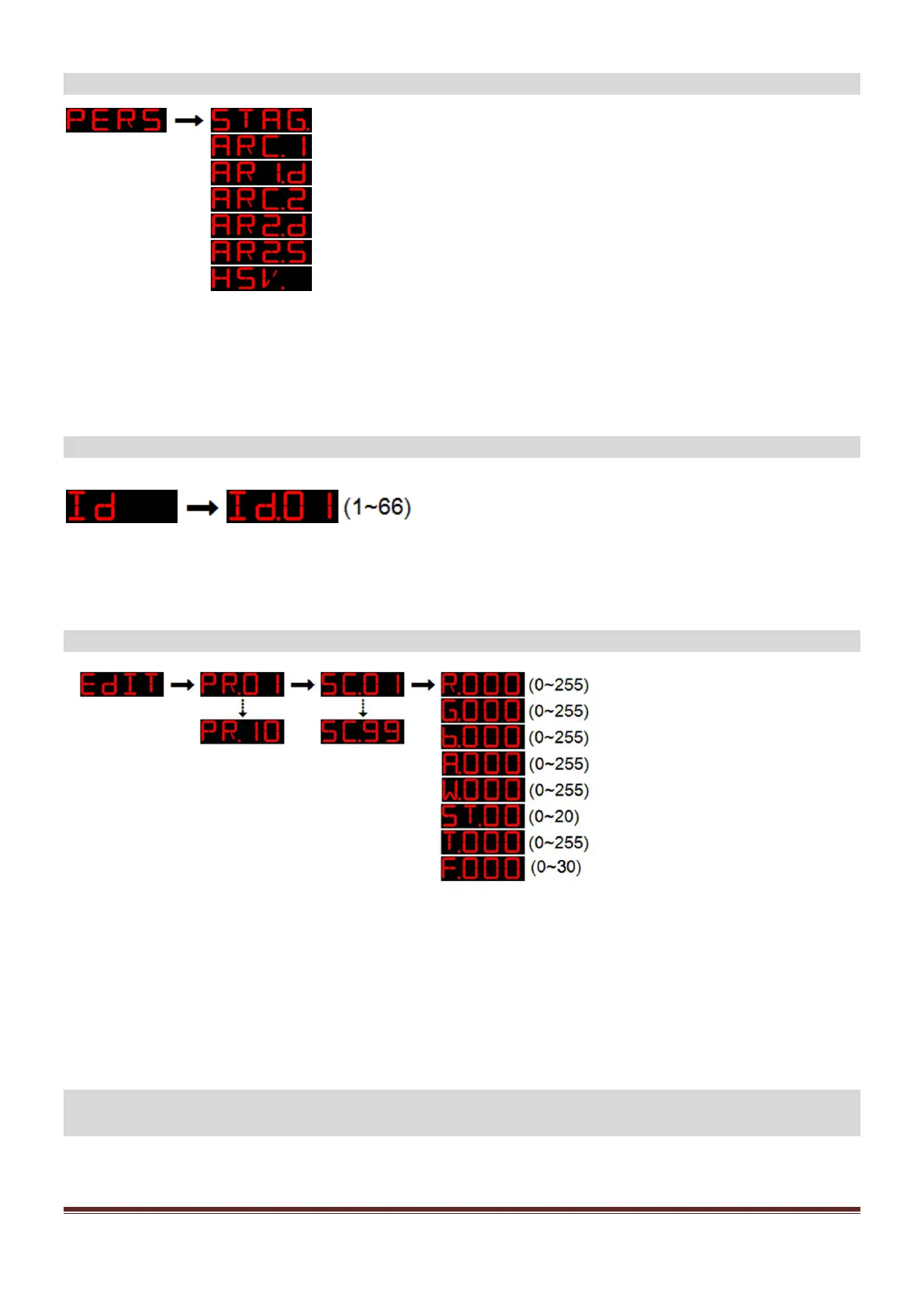 Apriete en【UP】/【DOWN】Para seleccionar el tipo de funcionamiento DMX ( ver la tabla ampliada )
