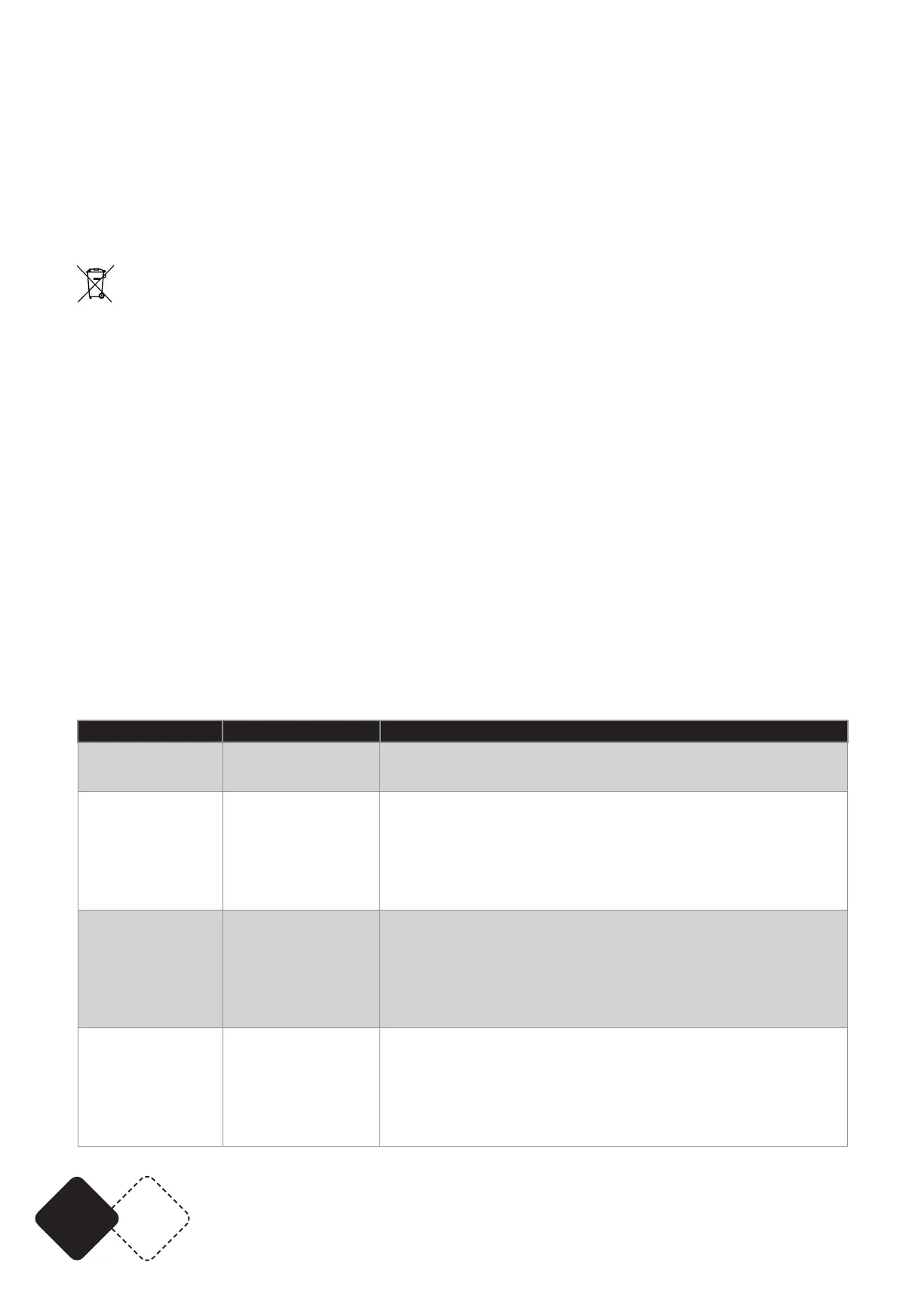 This symbol indicates that used batteries should not be disposed of with household waste but deposed correctly in accordance with