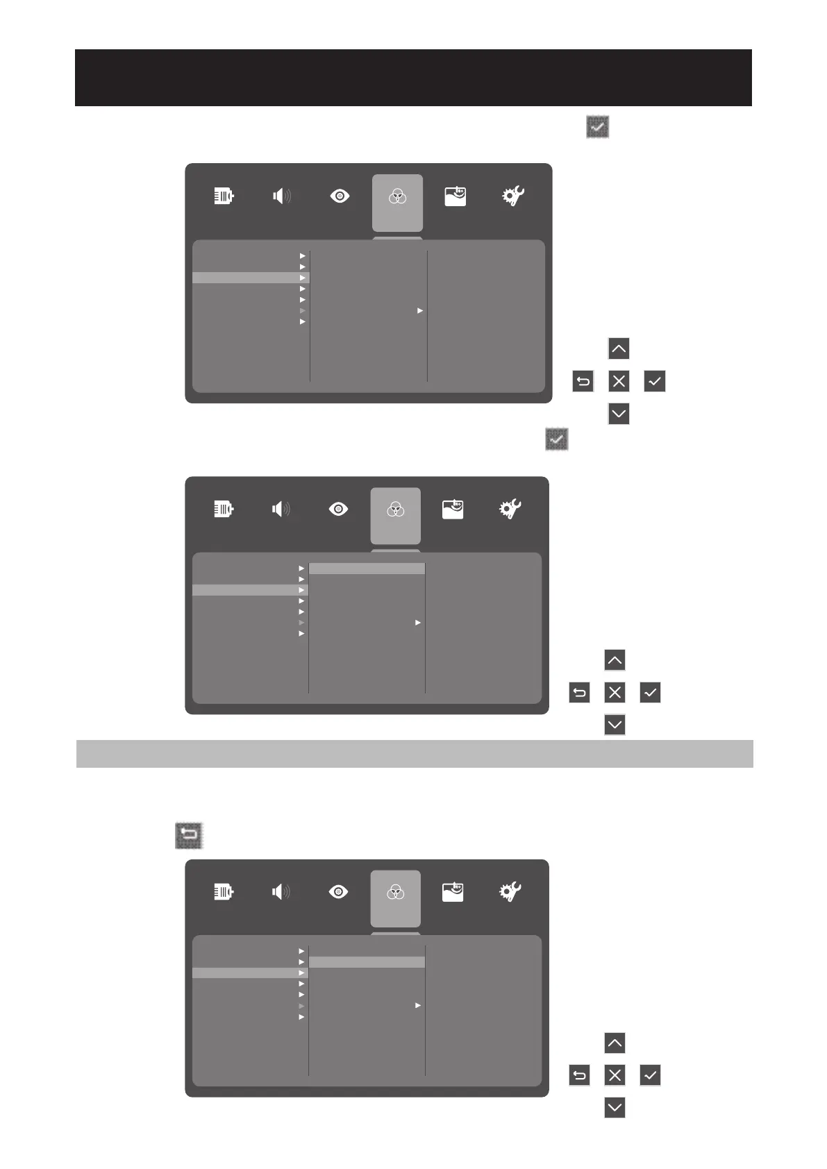 4. Move the Arrow Key ▲ or ▼ to adjust/select the setting. Then press the Key to conrm. Or move the