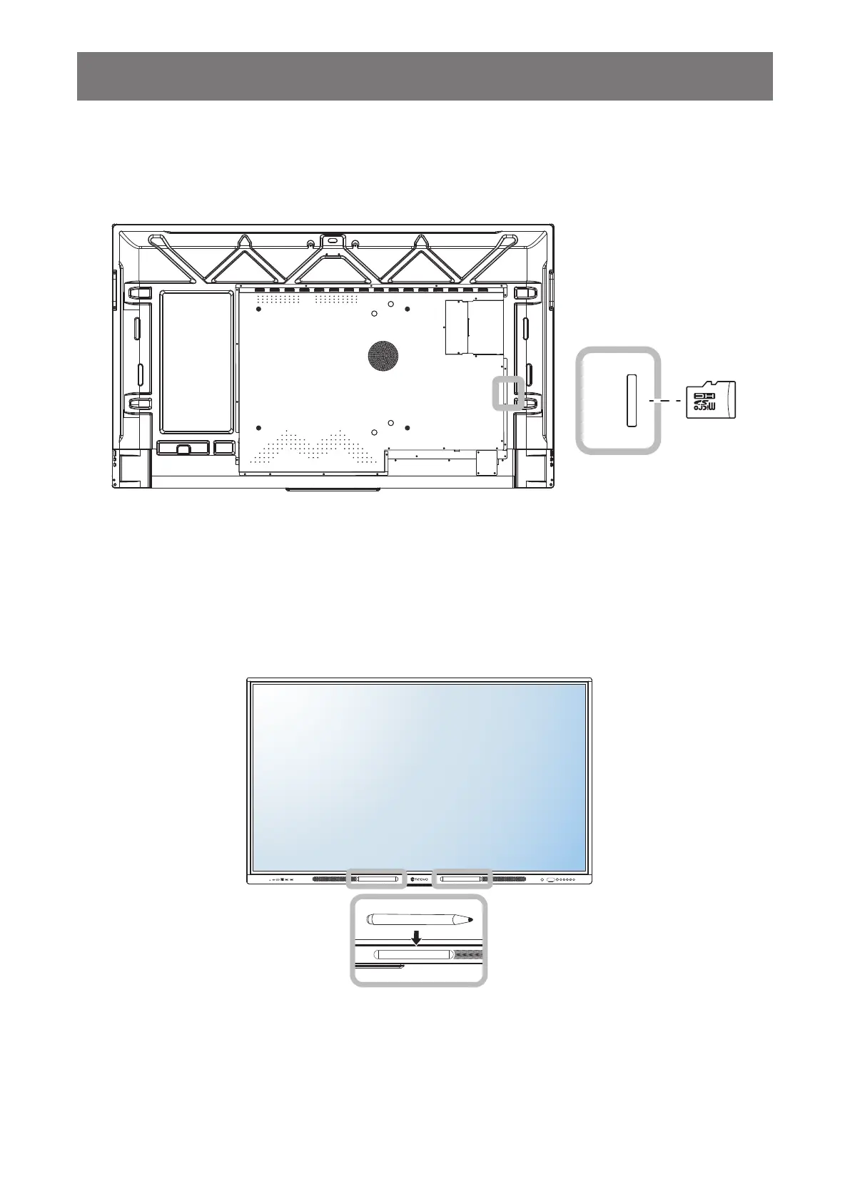 Attach the touch pen to the magnetic areas of the interactive display’s front panel.
