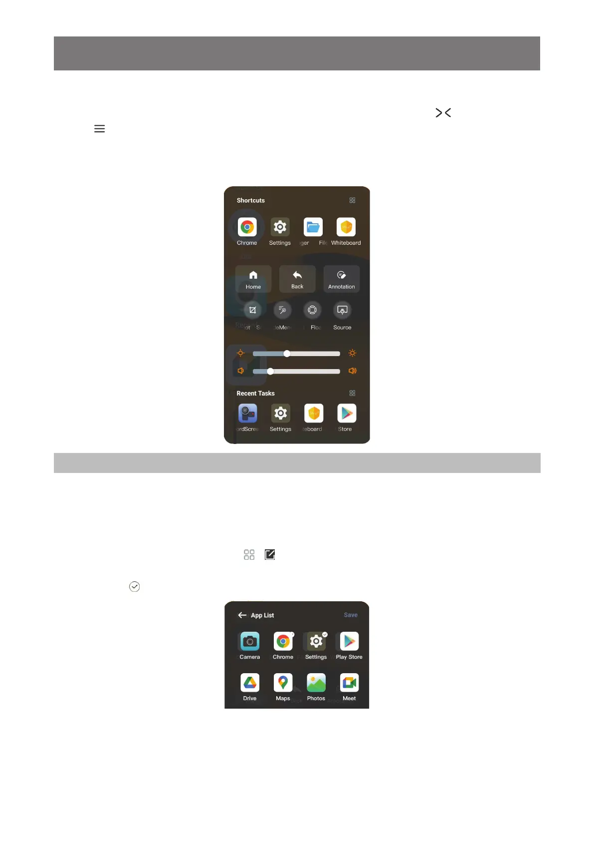 The Slide menu can be accessed on either sides of the interactive display by touching / or by