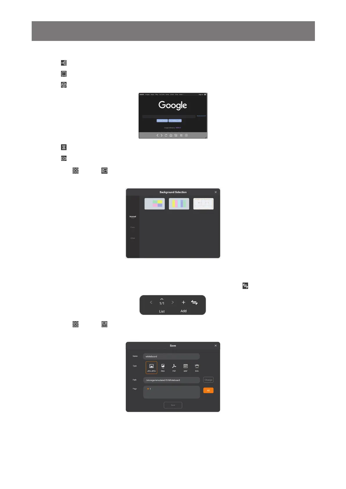 session, move to a specic page, or delete an unnecessary page by touching List in the page