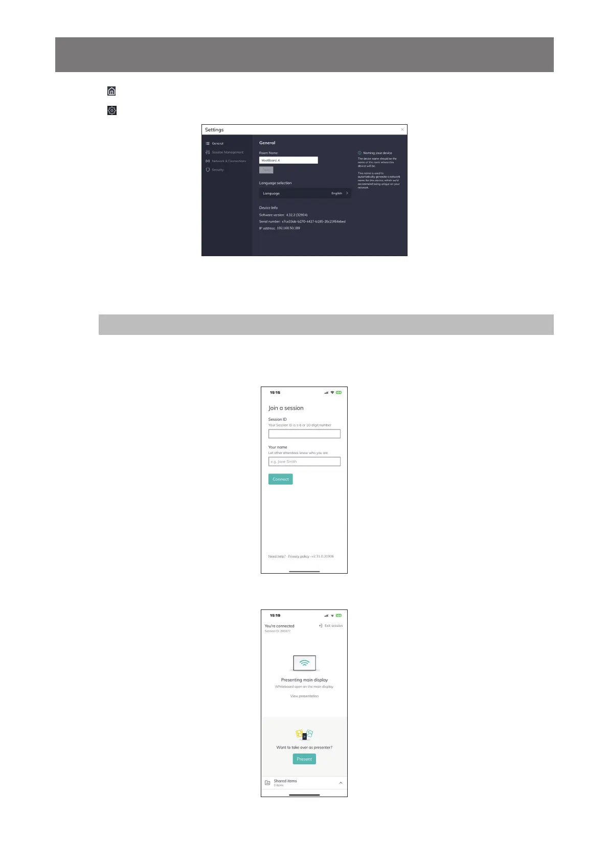 6 Enter the session ID that is displayed on the launcher screen and your name. Then touch Connect.