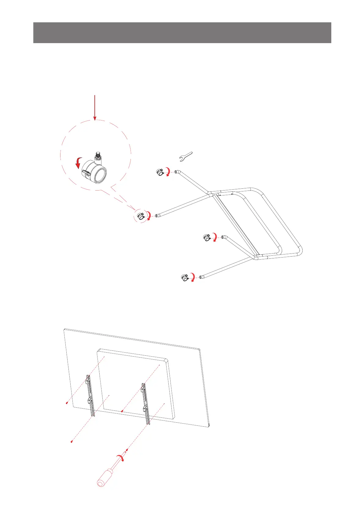 5 Place the stand face down on the oor. Adjust the wheel to the brake state and rotate it into the leg.