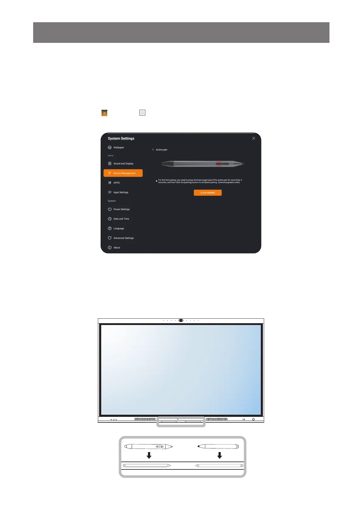 While not using the stylus or/and active pen, attach them to the magnetic areas on the interactive display’s