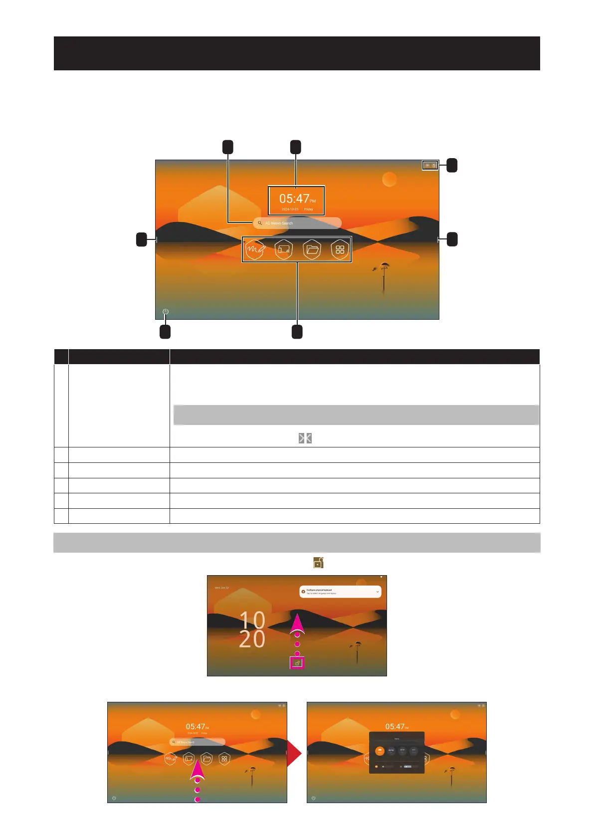 1 Sidebar menu Quick access for apps, Home screen, move backwards, annotation tool, smart