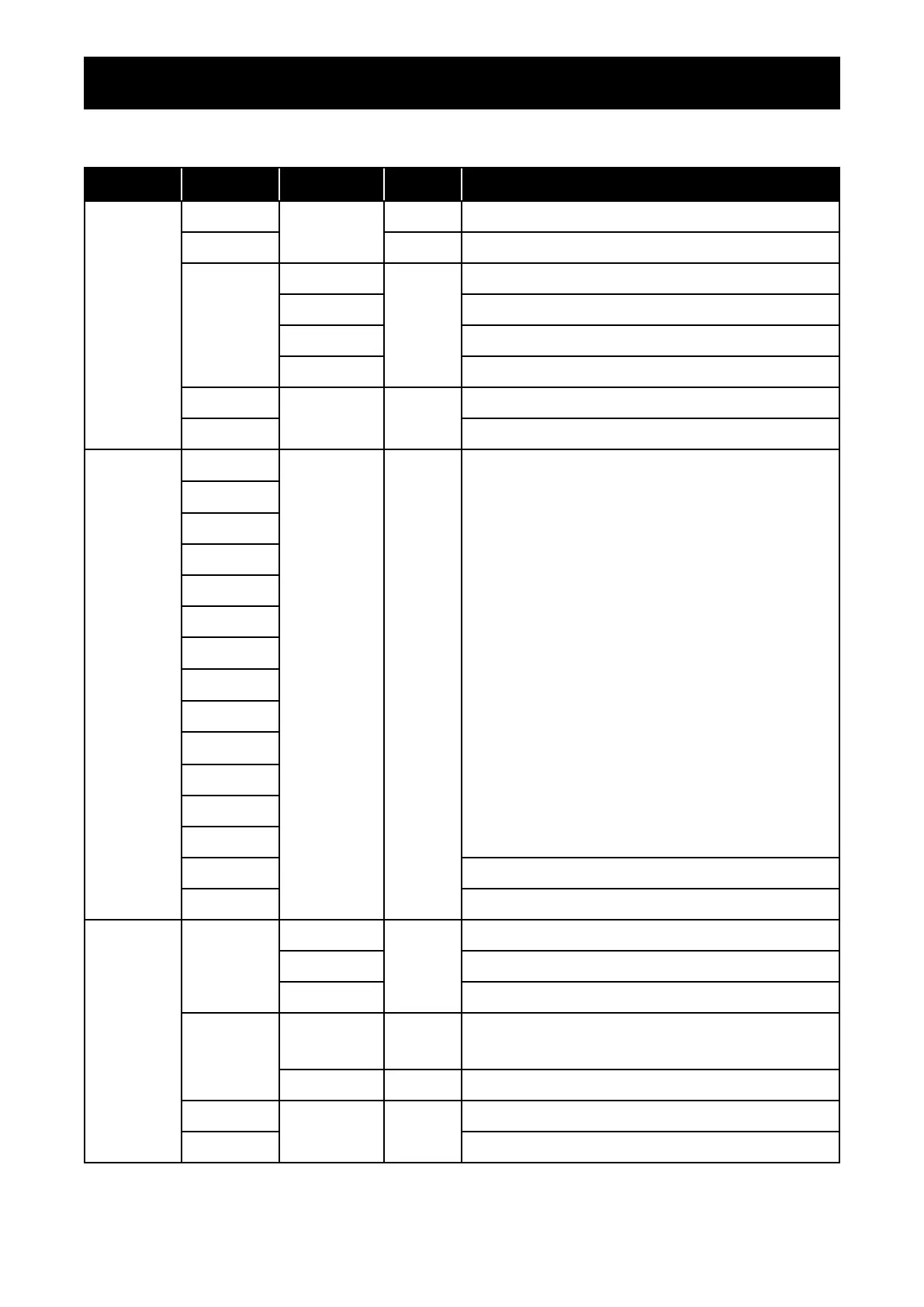 Main menu Submenu Third menu Range Description