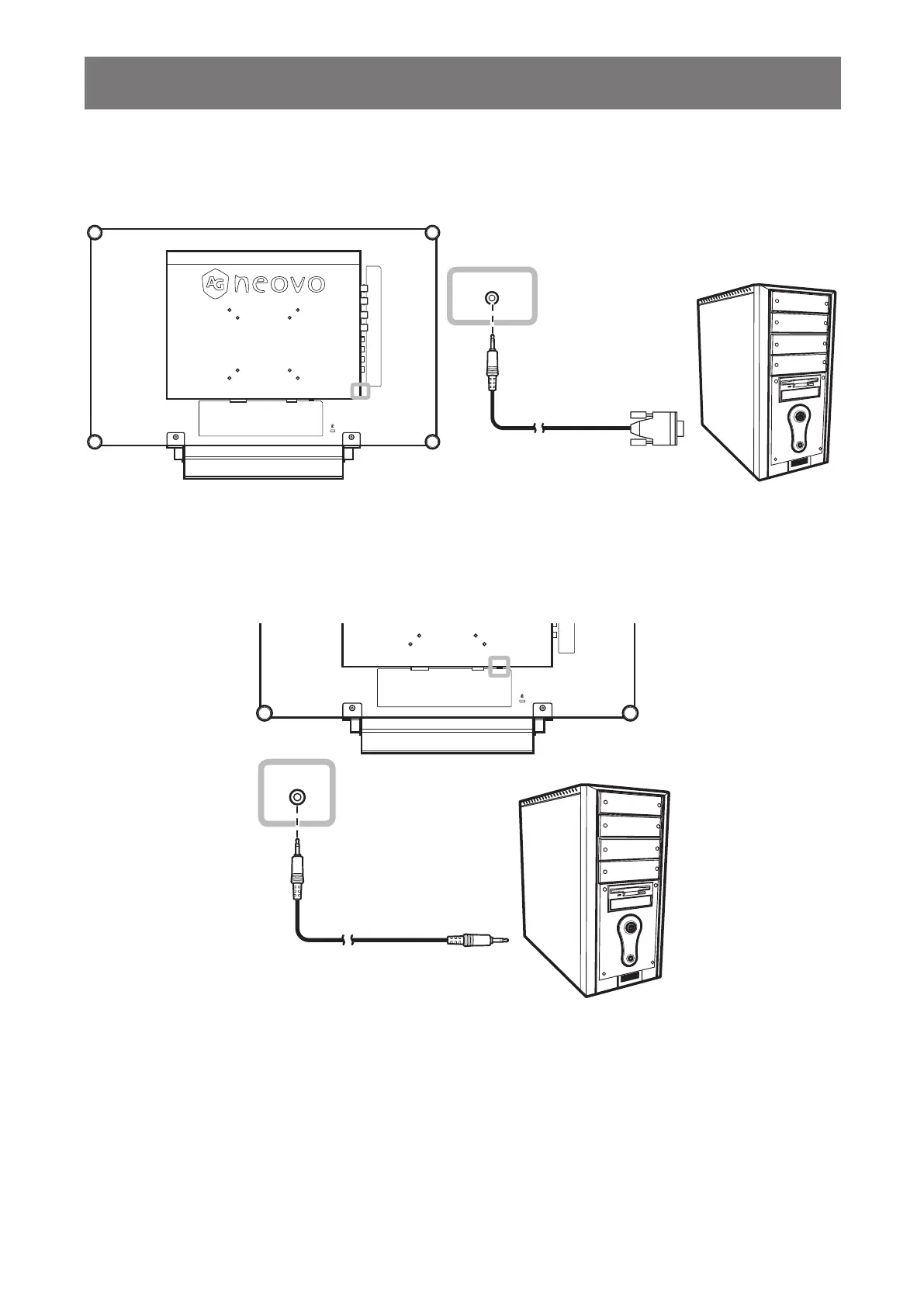 Connect one end of an audio cable to the AUDIO IN connector at the rear of the LCD display and the other