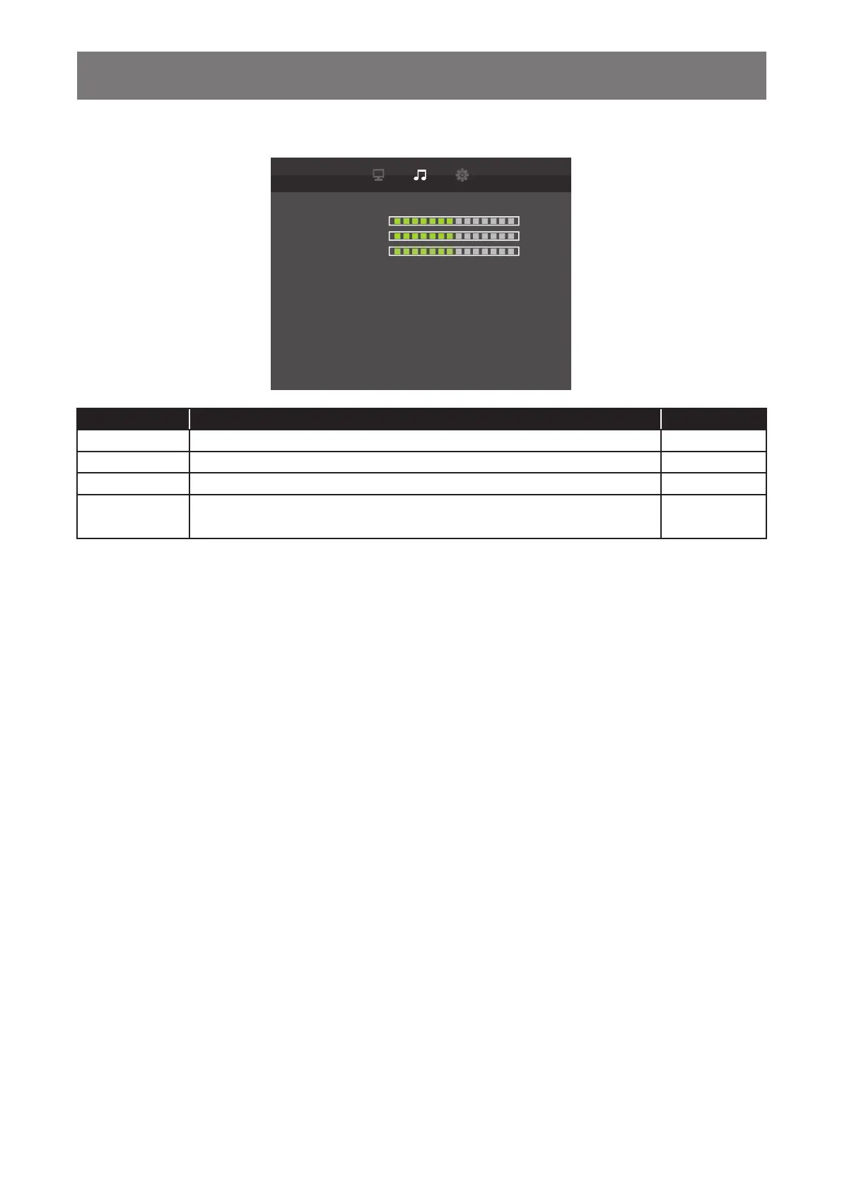 BALANCE Adjust to emphasize the left or right audio output balance. -50 to 50