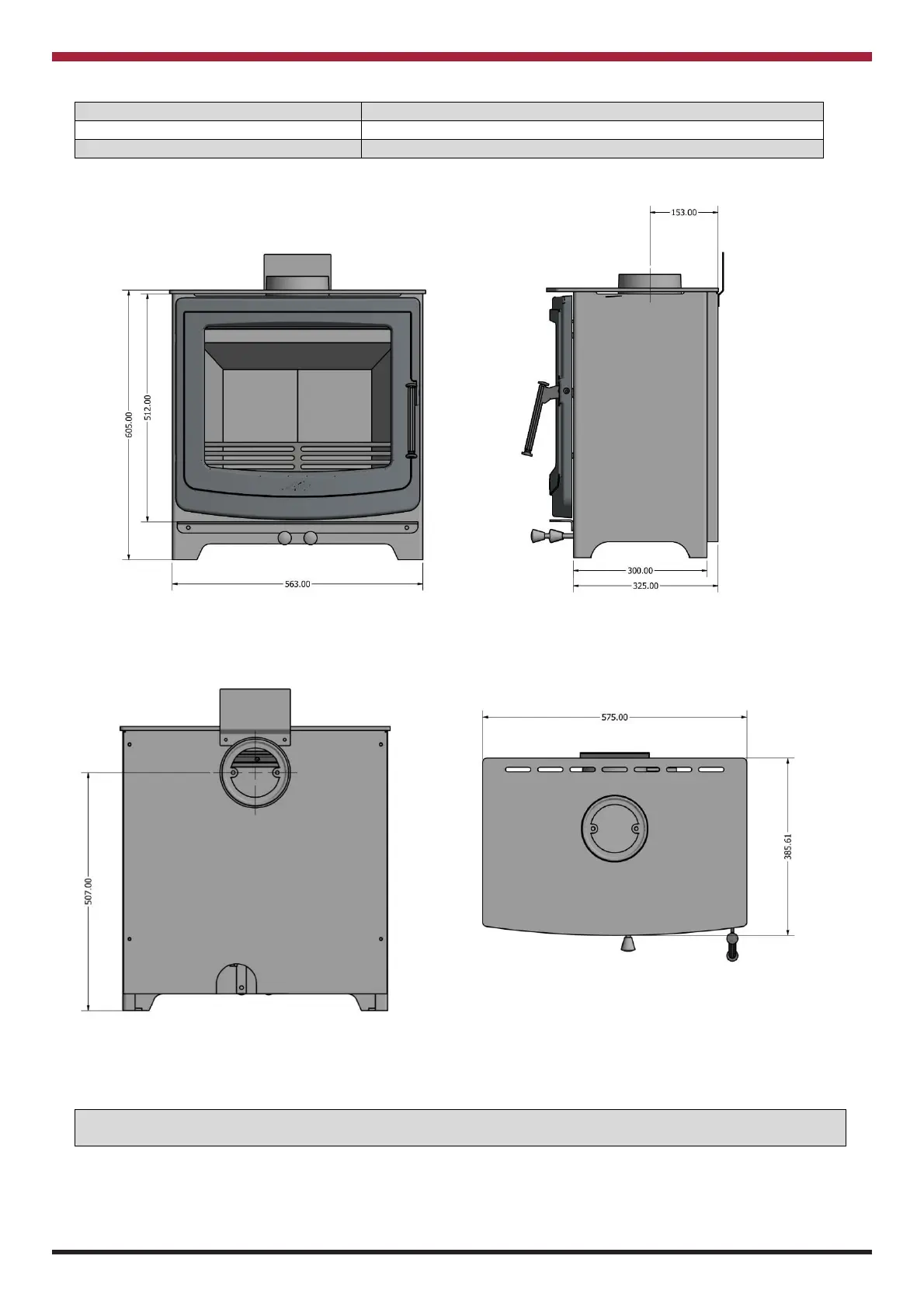 STOVE DRAWINGS WITH KEY DIMENSIONS: (Drawings Not to Scale)