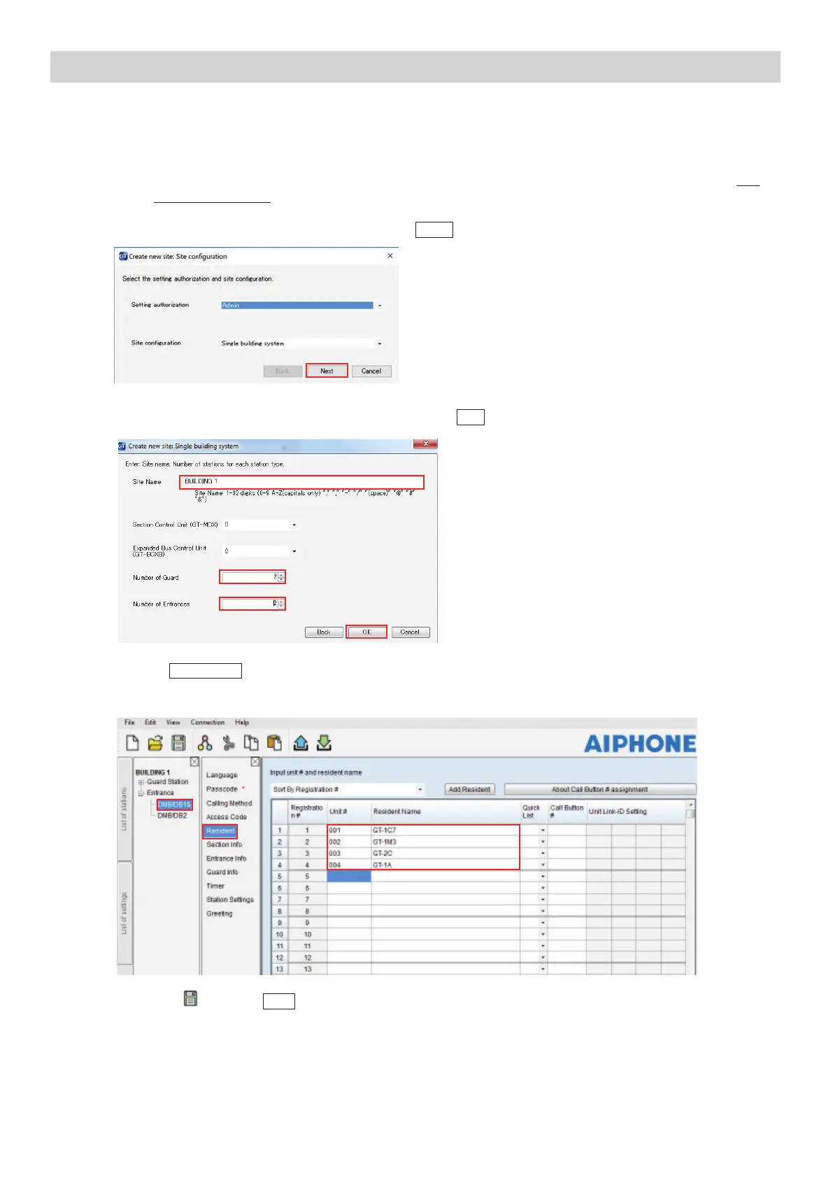 The GT-DMB(-N, -LVN), GT-MKB-N, and modular digital entrance stations must be programmed with the resident’s
