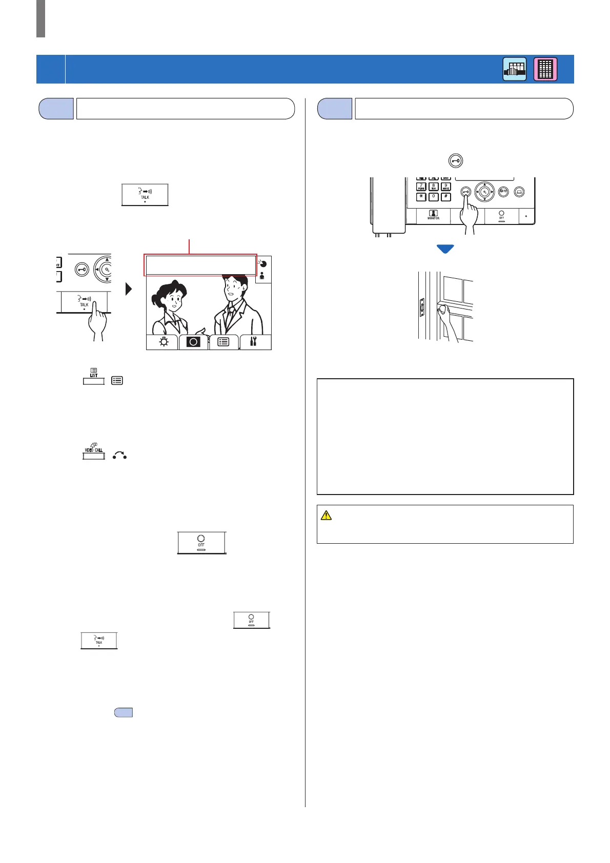 Be sure to confi rm the visitor securely before releasing the door if the