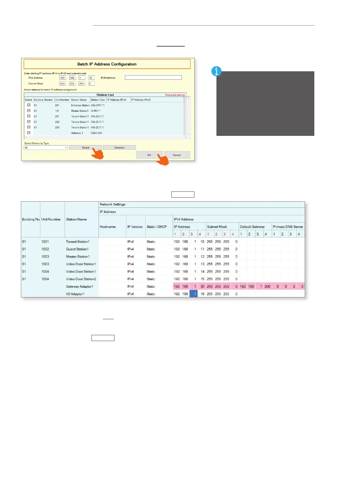 address, or click near the top of the screen to enter an IP address range to automatically assign all stations.