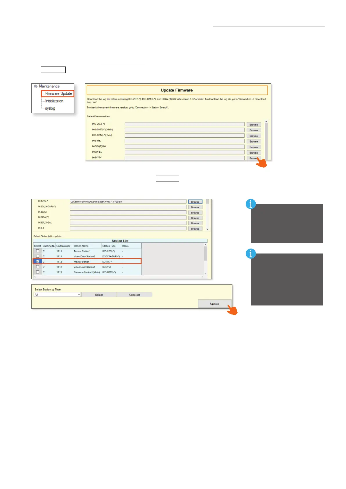 buttons to navigate to where the appropriate rmware .bin le is located. Multiple station types can