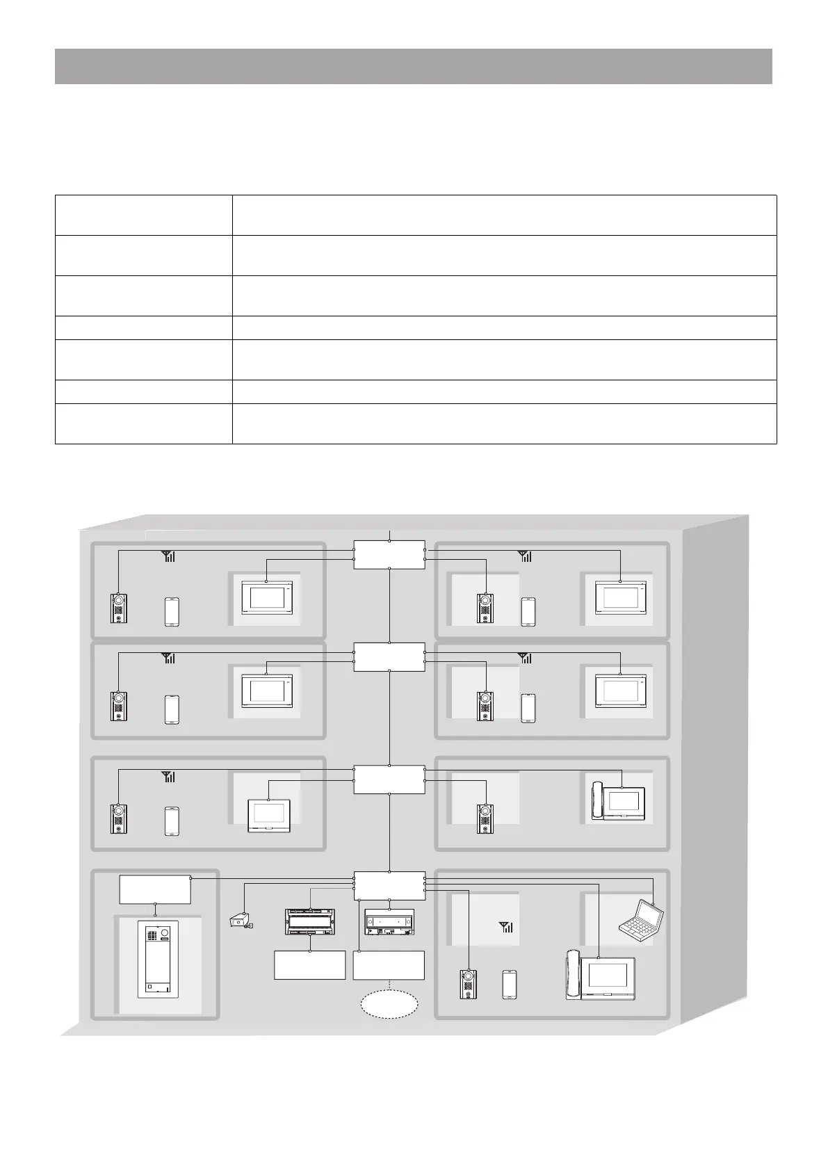 Common Inside Area IXG-MK, IX-MV7-*, IX-RS-*, IX-SOFT, or VoIP Phone (max.8 per unit), door station (max.2 per