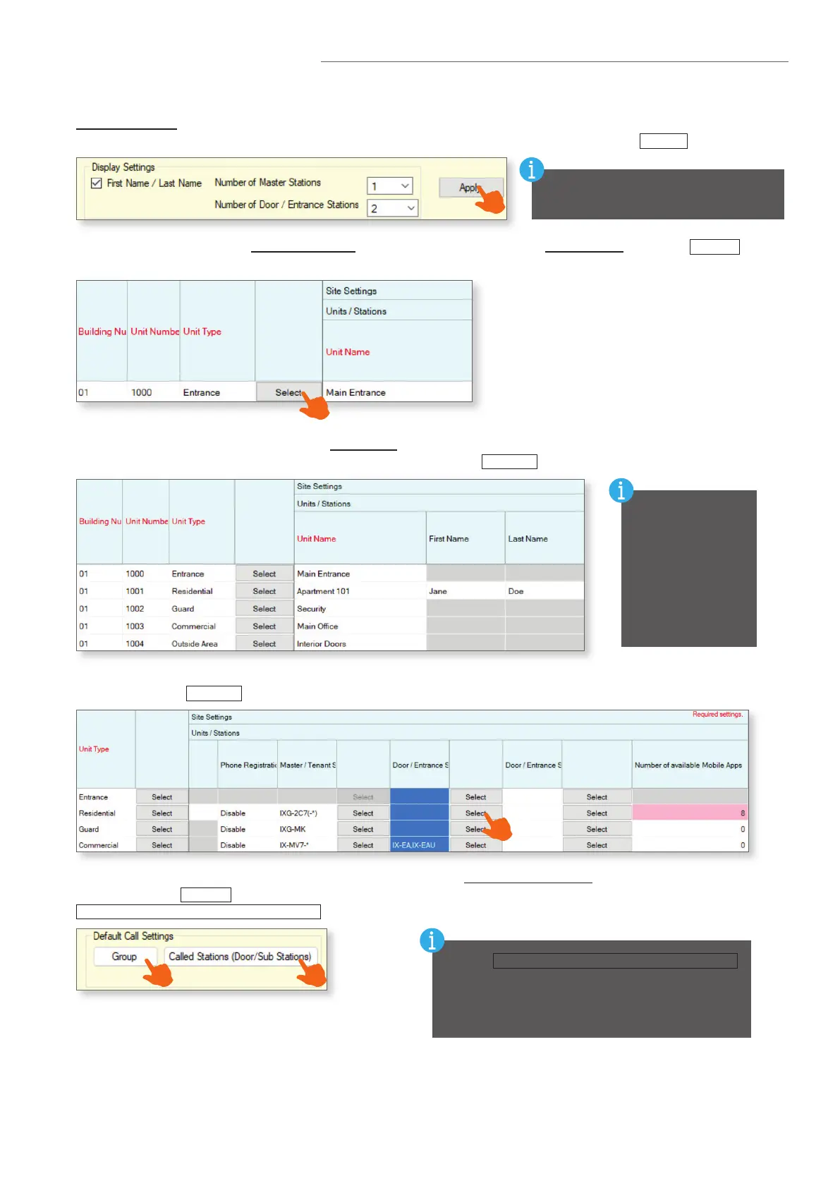 Display Settings section. By default, each unit is set to have one Master/Tenant Station and one Entrance/Door
