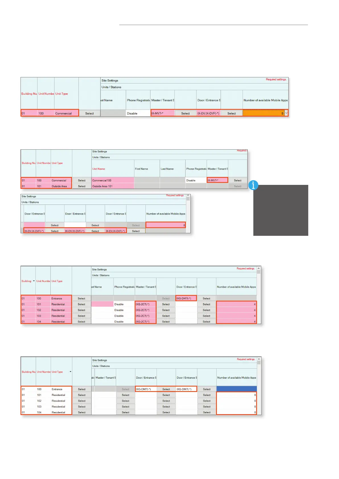 For apartment buildings where the tenants only have mobile apps, place IXG-DM7-HID* entrance stations in an