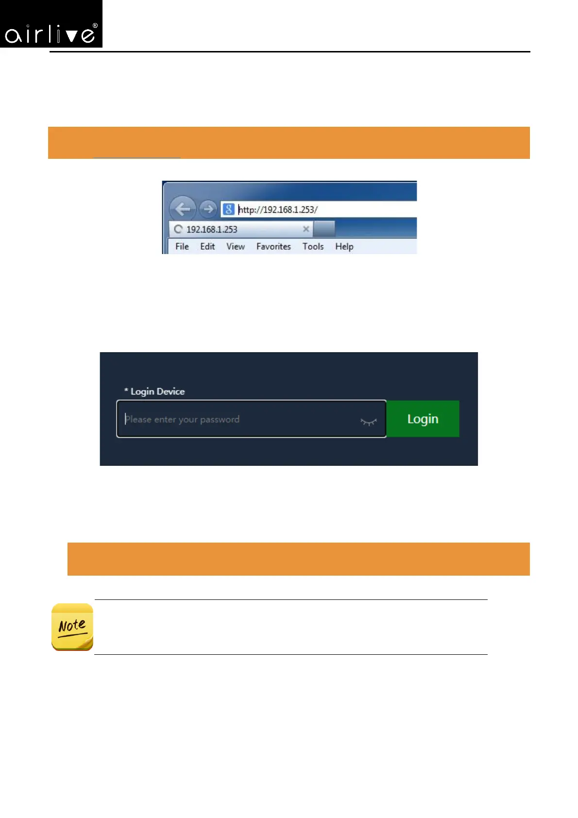 After a moment, a l ogin window will appear. Enter admin for the password in lower case letters. Then click
