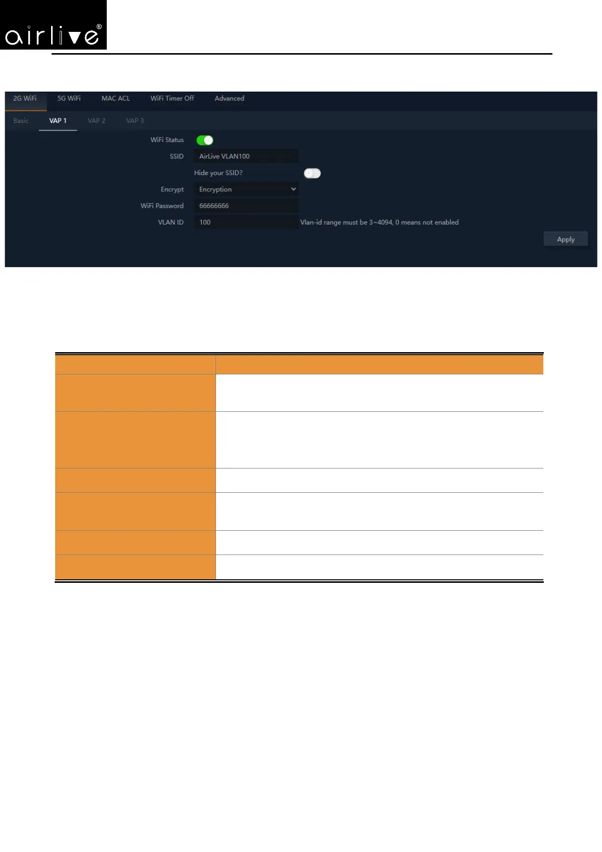 It is the wireless network name. The default SSID is “AirLive_2.4G