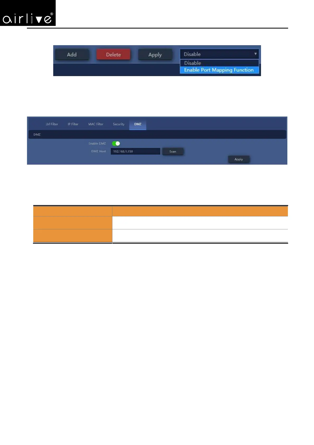 Enable DMZ Host or Disable
