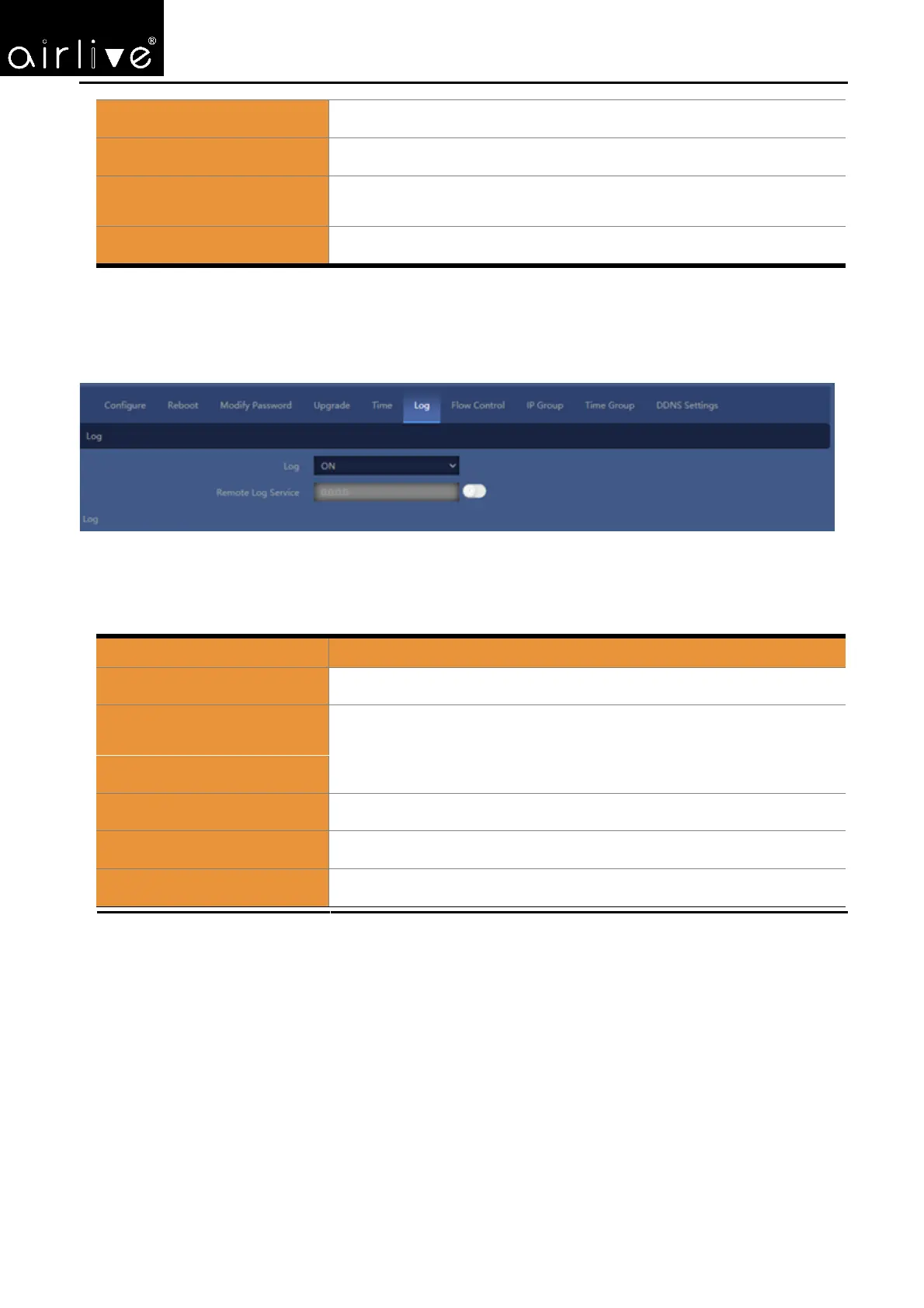 ON (Green) or OFF (Gray) to enable or disable remote log