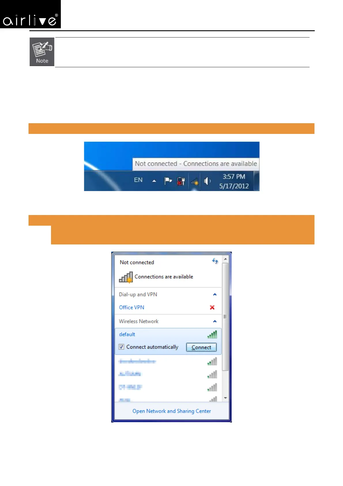 Step 2: Highlight and select the wireless network (SSID) to connect