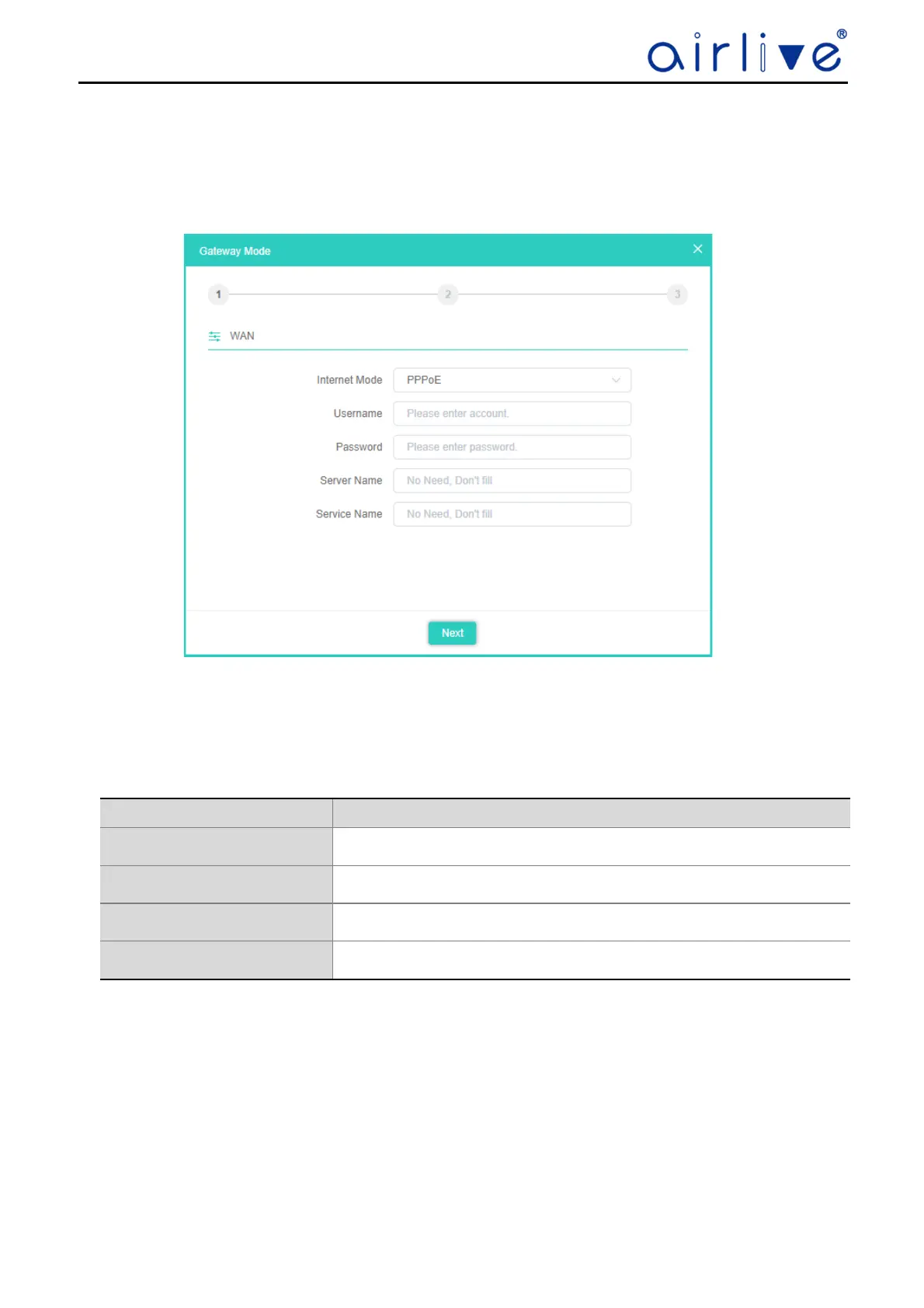 Enter the PPPoE