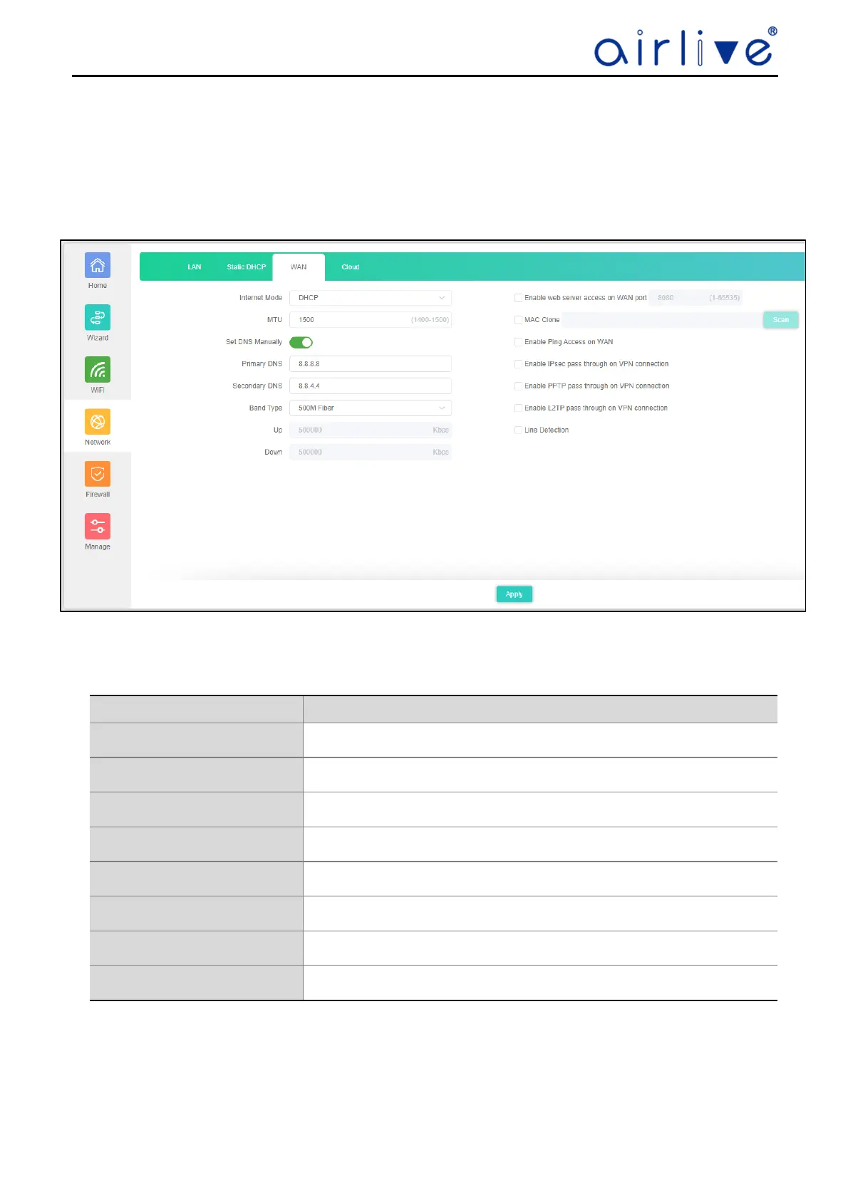 WAN Settings allows you setup the Internet Mode of the CPE, When using the WAN settings make sure your WAN