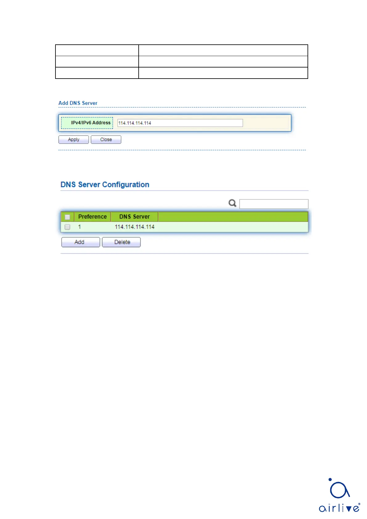 2. “Add” to configure DNS server.