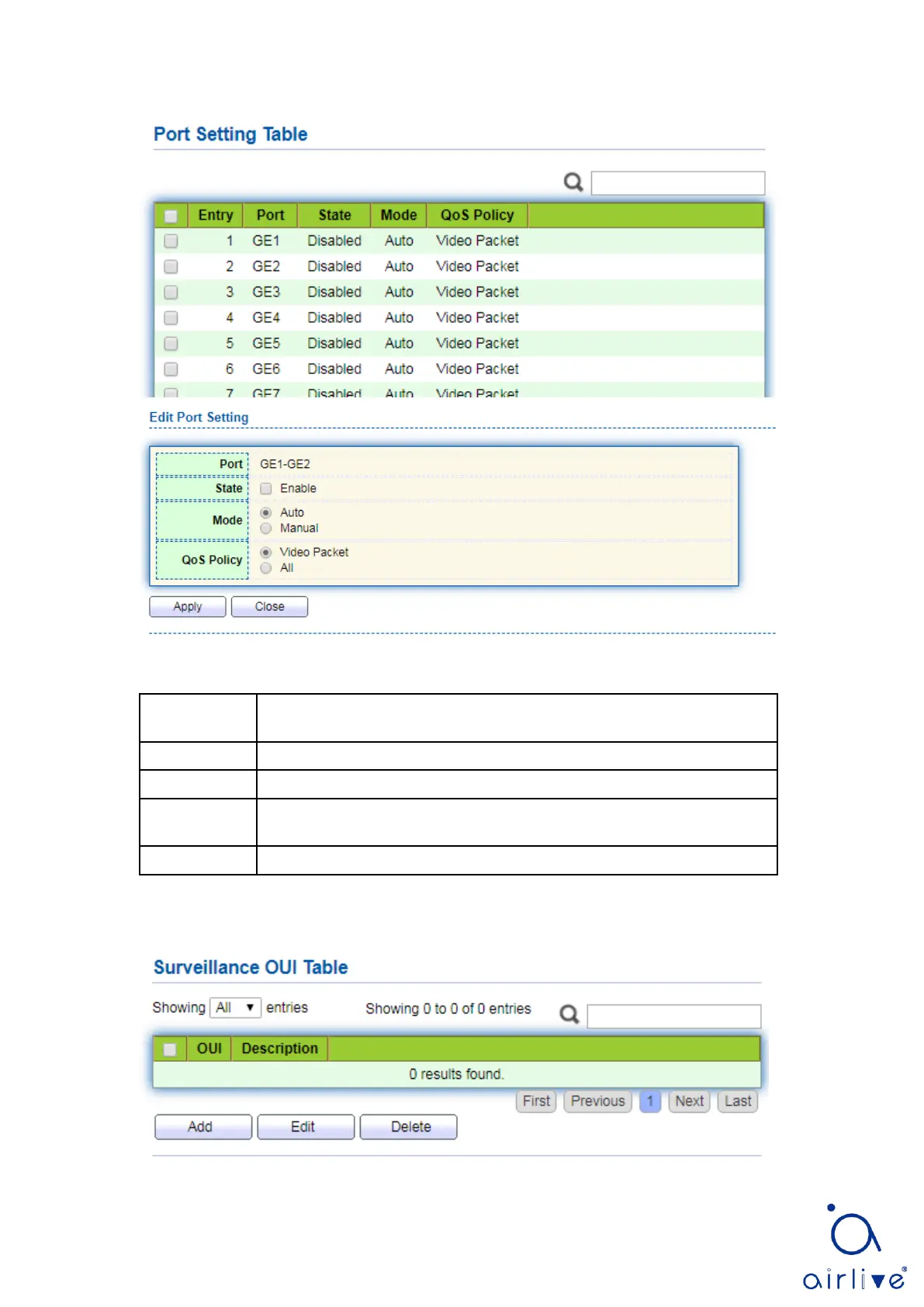 2. Click the “VLAN > Surveillance VLAN > Surveillance OUI” in the navigation bar to