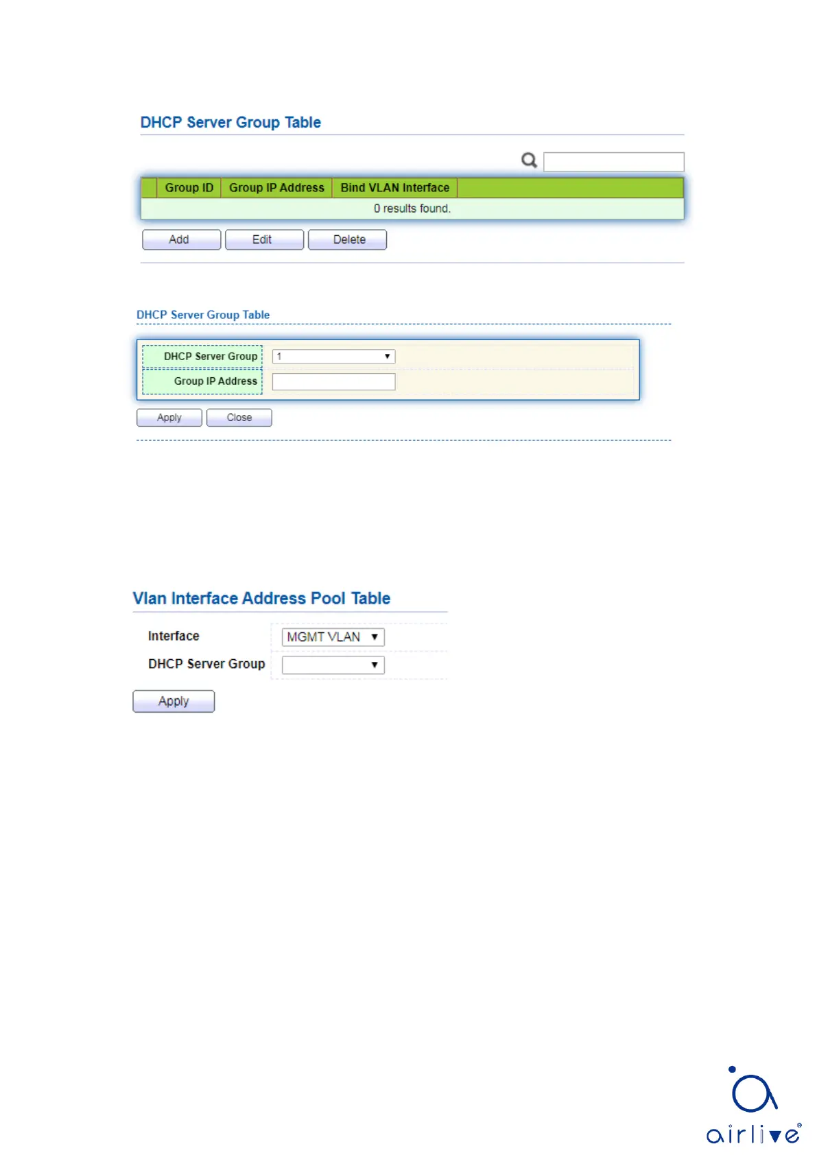 1. Click the “DHCP > VLAN IF Address Group Setting”, enter the VLAN Interface Address