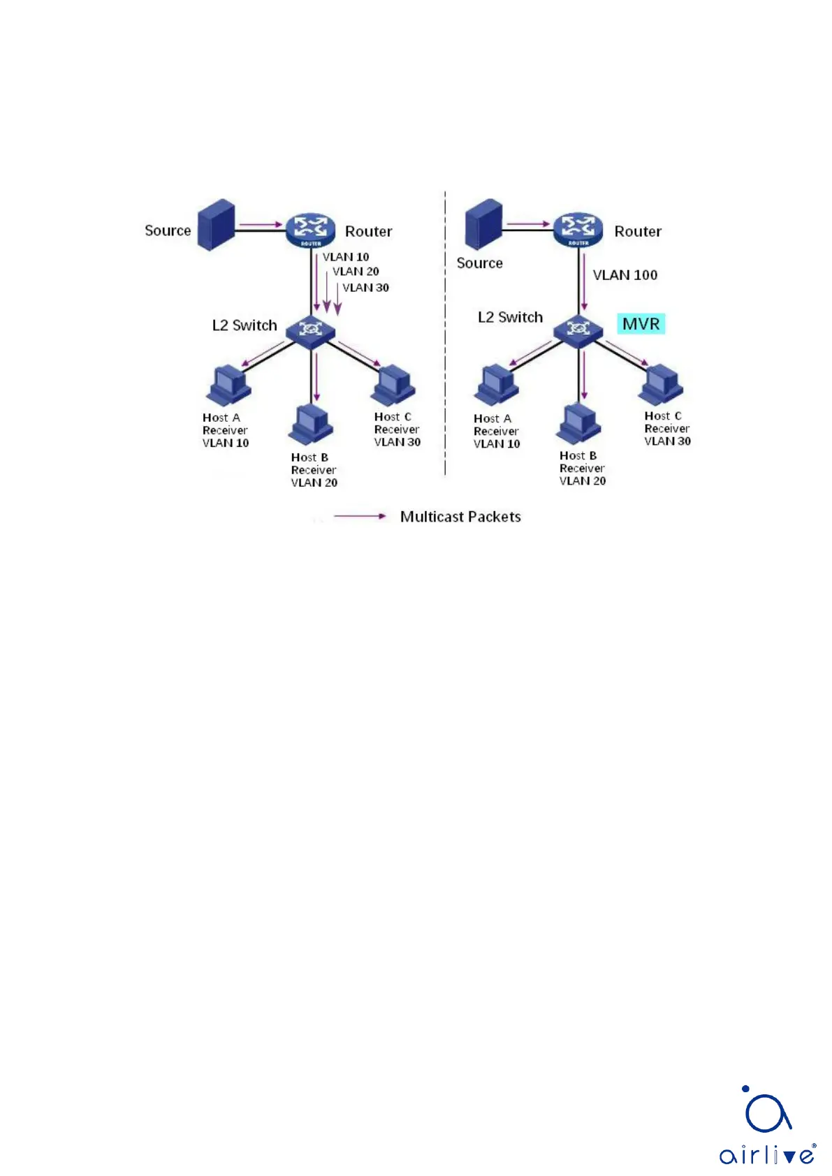 of cross VLAN, we adopt the dedicated multicast VLAN of multicast source traffic, as