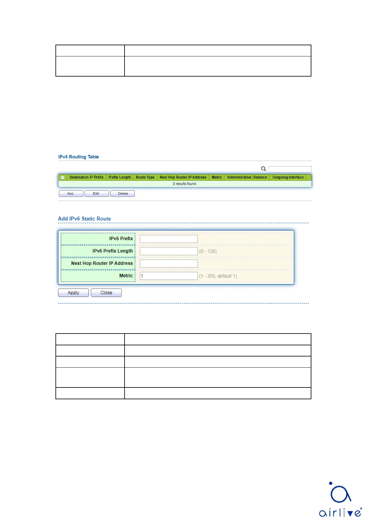 1. Click the “Routing > IPv6 Management and Interfaces > IPv6 Routes”, enter IPv6 static