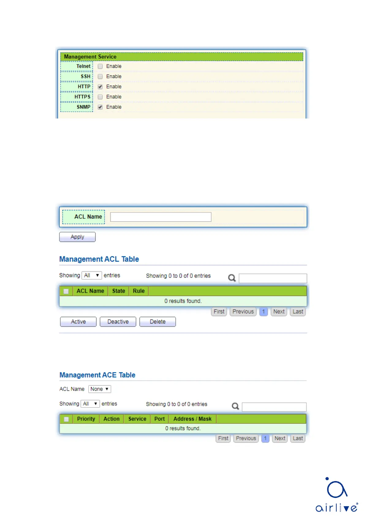 1. Click the “Security > Management Access > Management ACL”, enter management