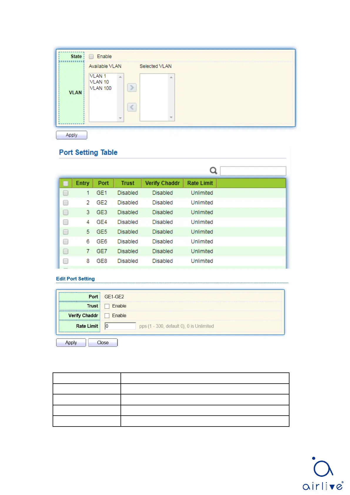 Valid VLAN No. of DHCP Snooping