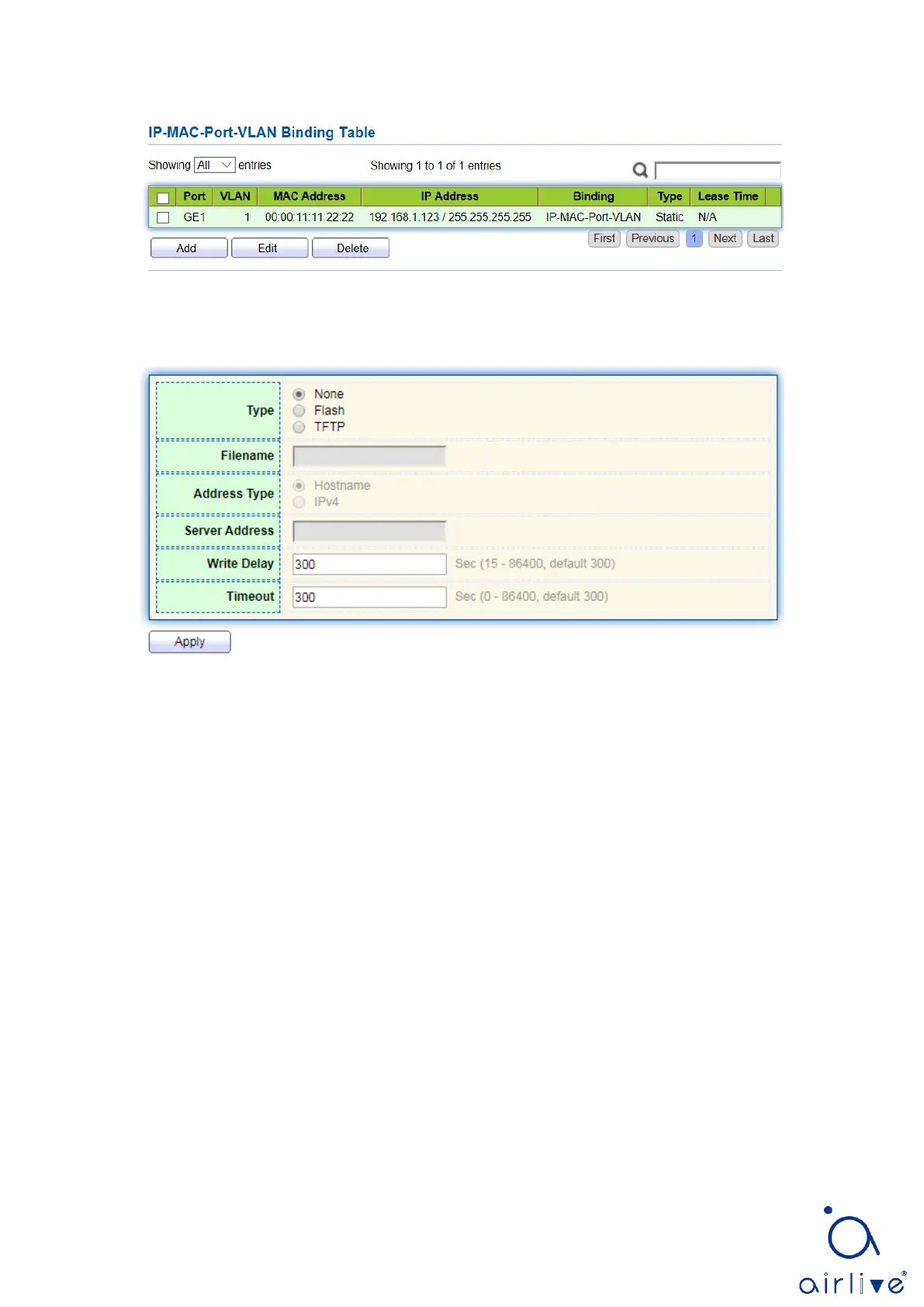 4. Click the “Security > IP Source Guard > Save Database” enter database interface as