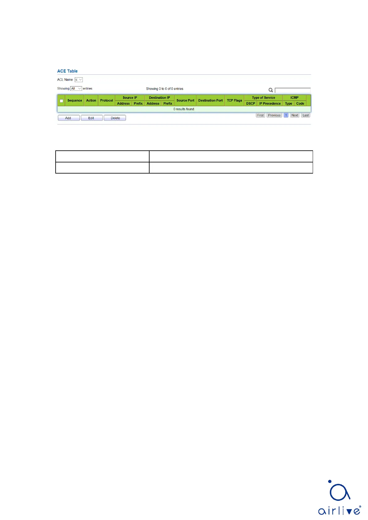 2. Click the “ACL > IPv6 ACE” in the navigation bar, “Add” the ACL Name as follows: