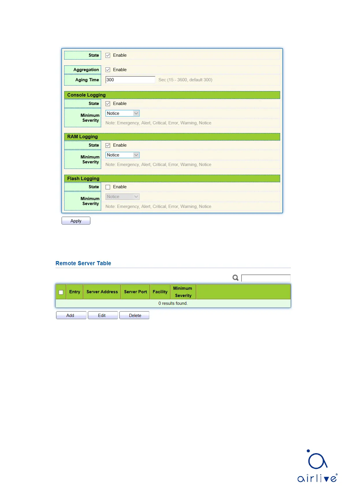 3. “Add” a new remote log server and “Edit” the selected configuration. “Apply” and finish