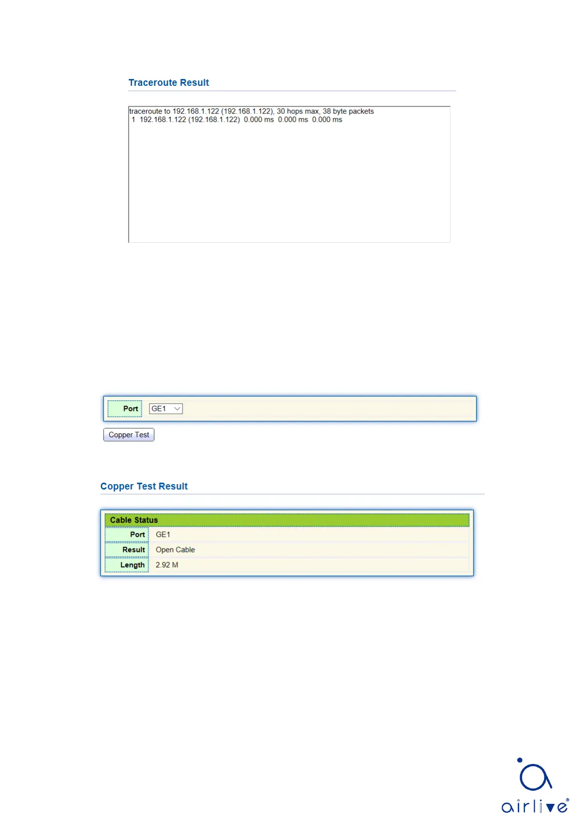 1. Click the “Diagnostics > Copper Test” in the navigation bar to select a port for test as