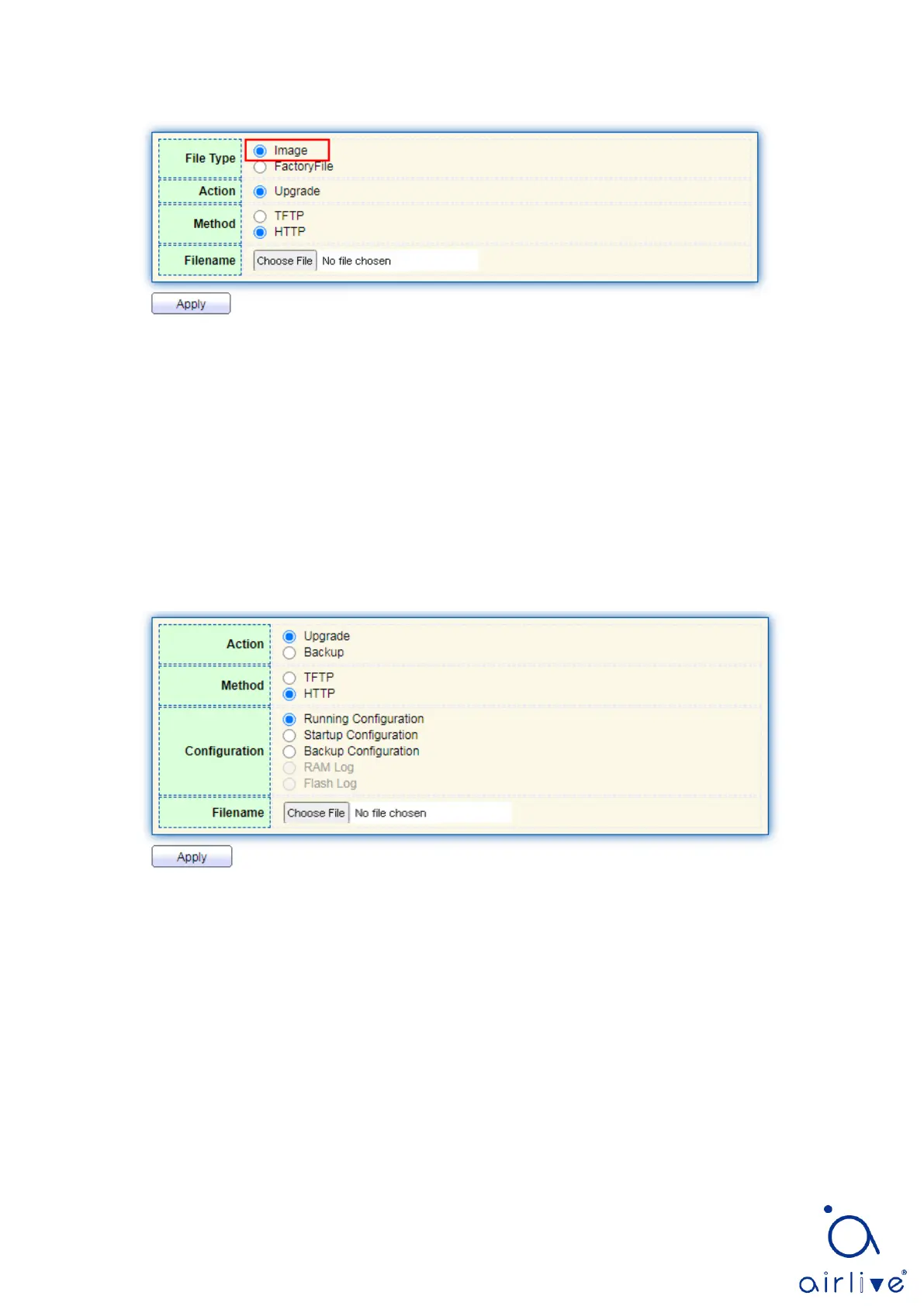 illustrated in TFTP mode). “Apply” and finish as follows: