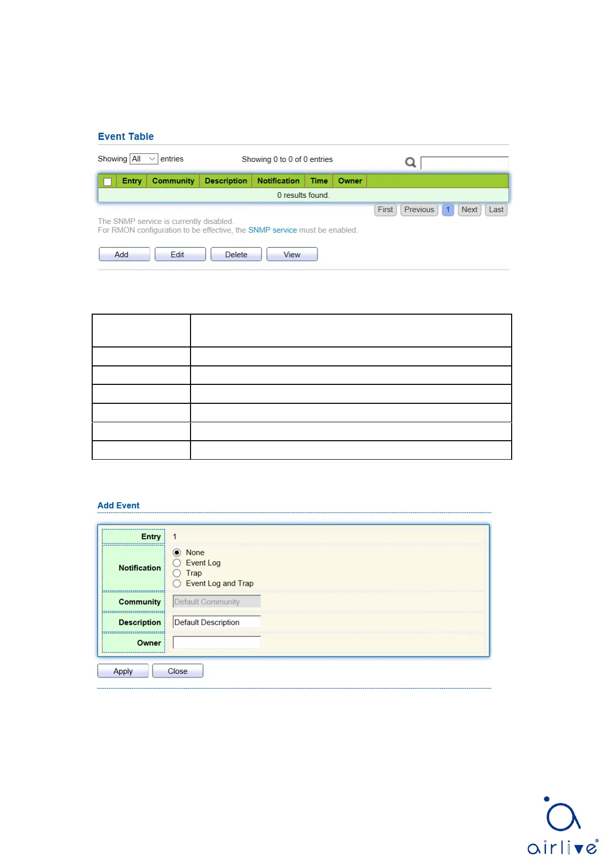 1. Click the “Management > RMON > Event” in the navigation bar as follows.