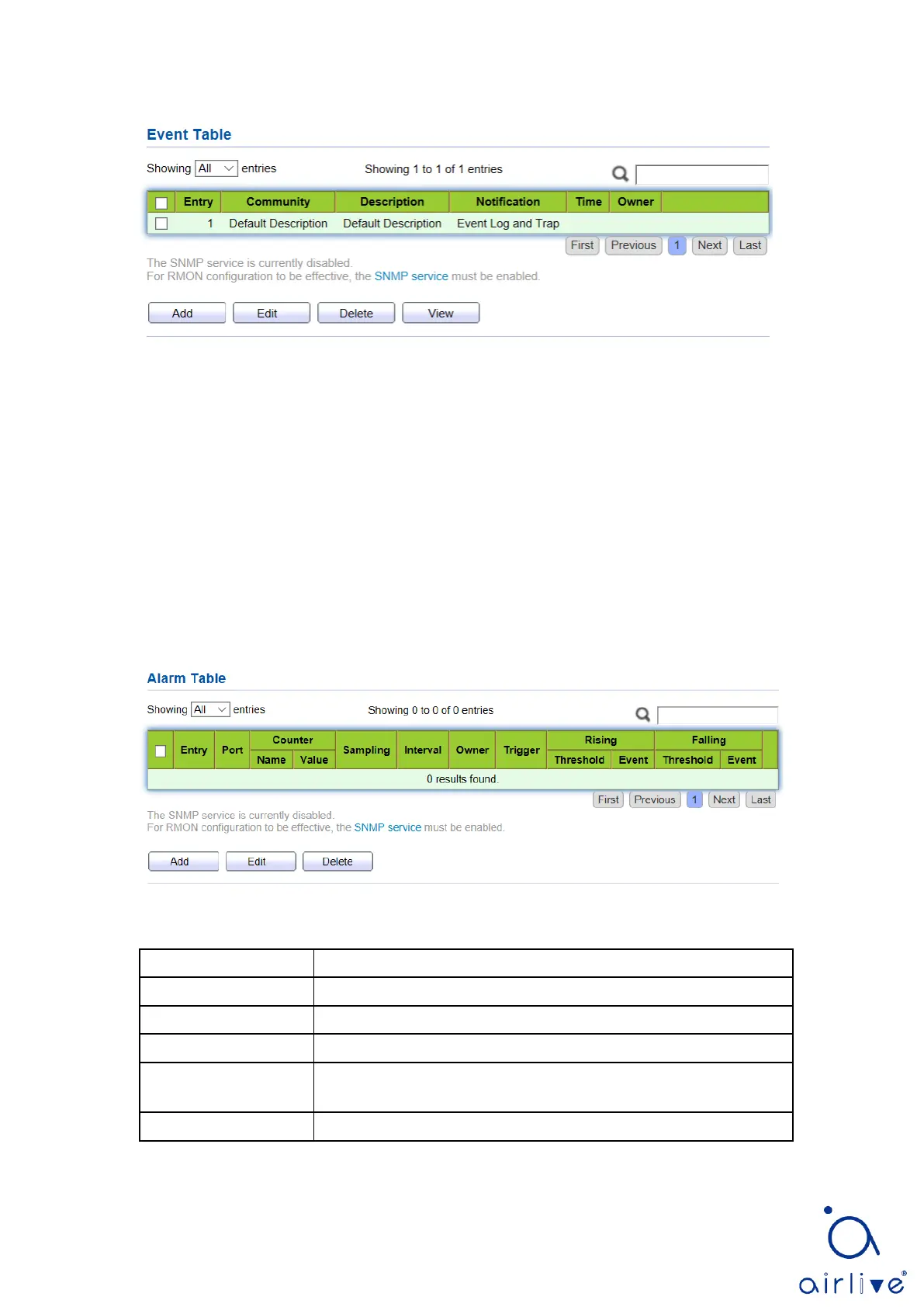 1. Click the “Management > RMON > Alarm” in the navigation bar as follows.