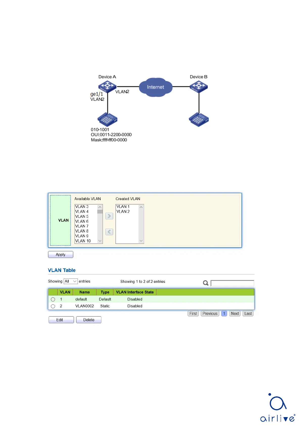 VLAN > Create VLAN” in the navigation bar to add VLAN 2 to the VLAN list on the right.
