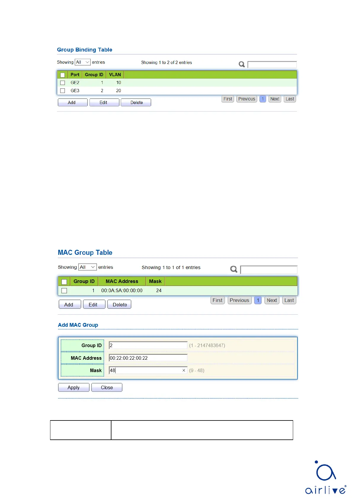 1. Click the “VLAN > MAC VLAN > MAC Group” in the navigation bar, and “Add” a new
