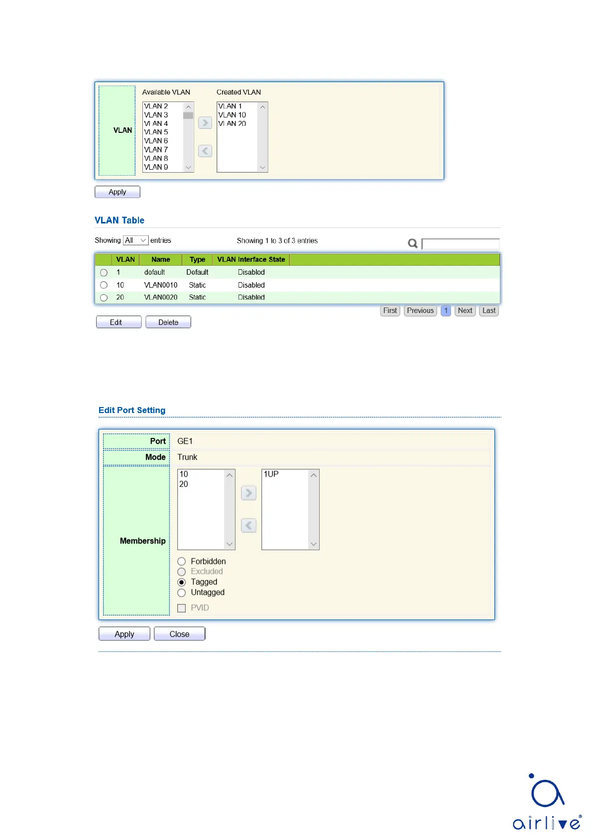 2. VLANs are added to the switch ports ingress loops. Click the “VLAN > VLAN >