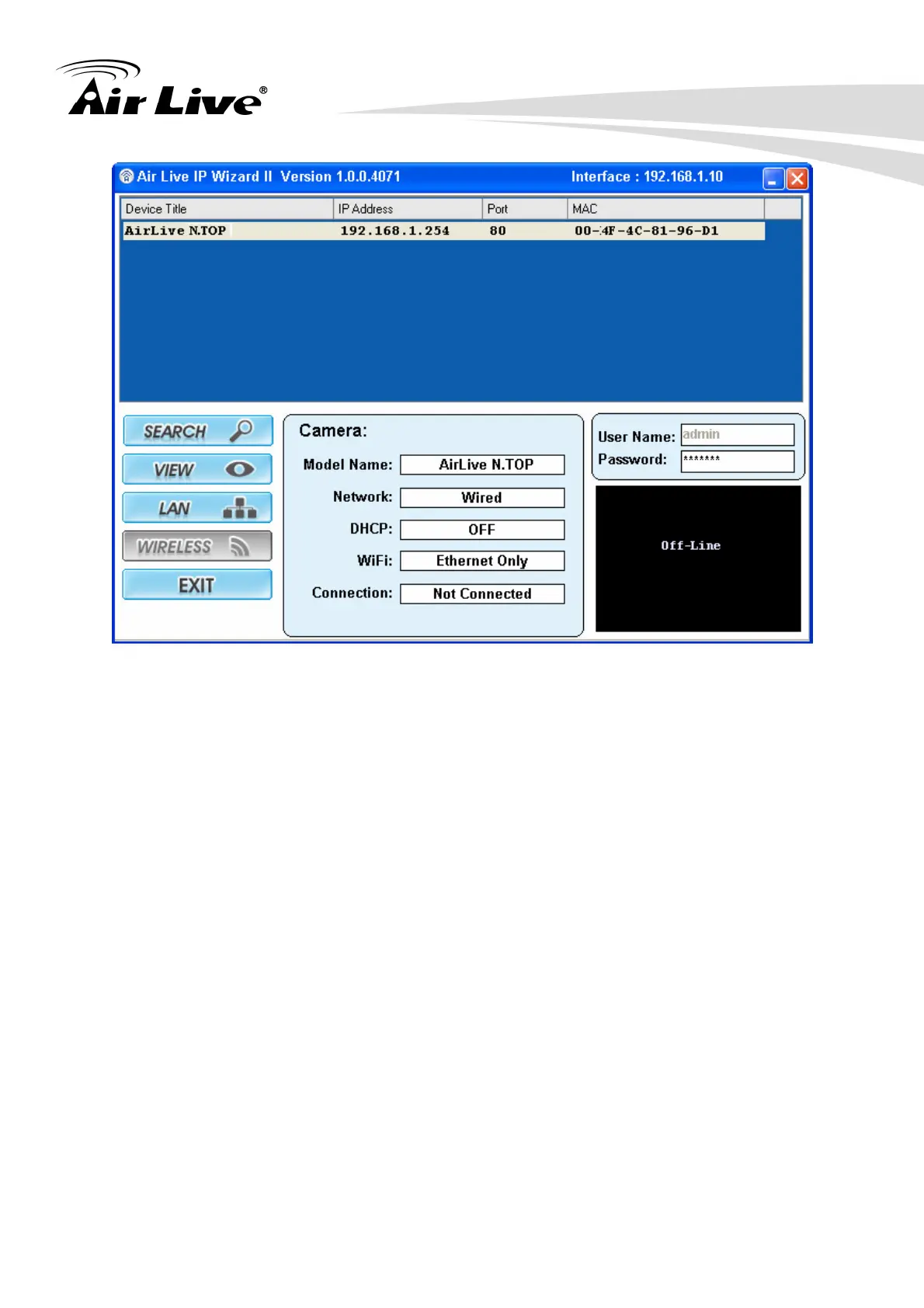 Search: By clicking Search, IP Finder will try to discover the N.TOP on the network.