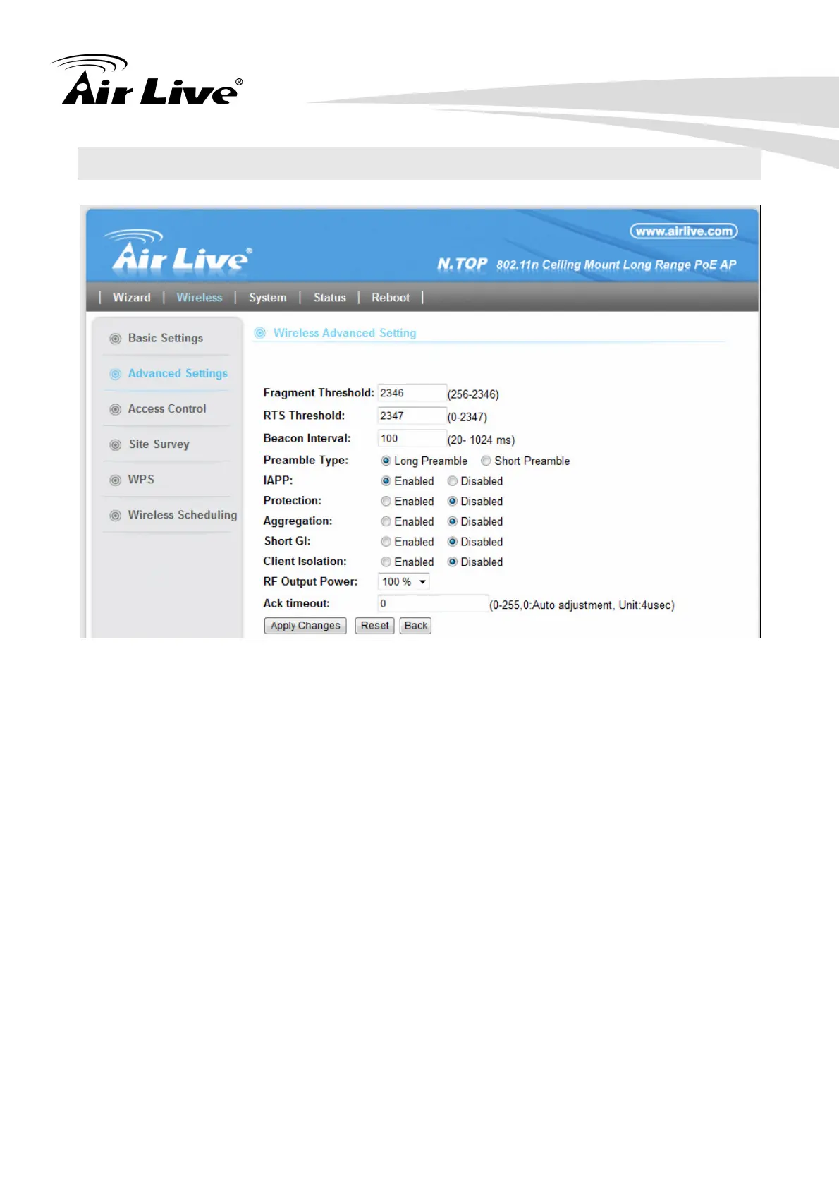 Bekijk gratis de handleiding van Airlive N.TOP, stel vragen en lees de antwoorden op veelvoorkomende problemen, of gebruik onze assistent om sneller informatie in de handleiding te vinden of uitleg te krijgen over specifieke functies.
